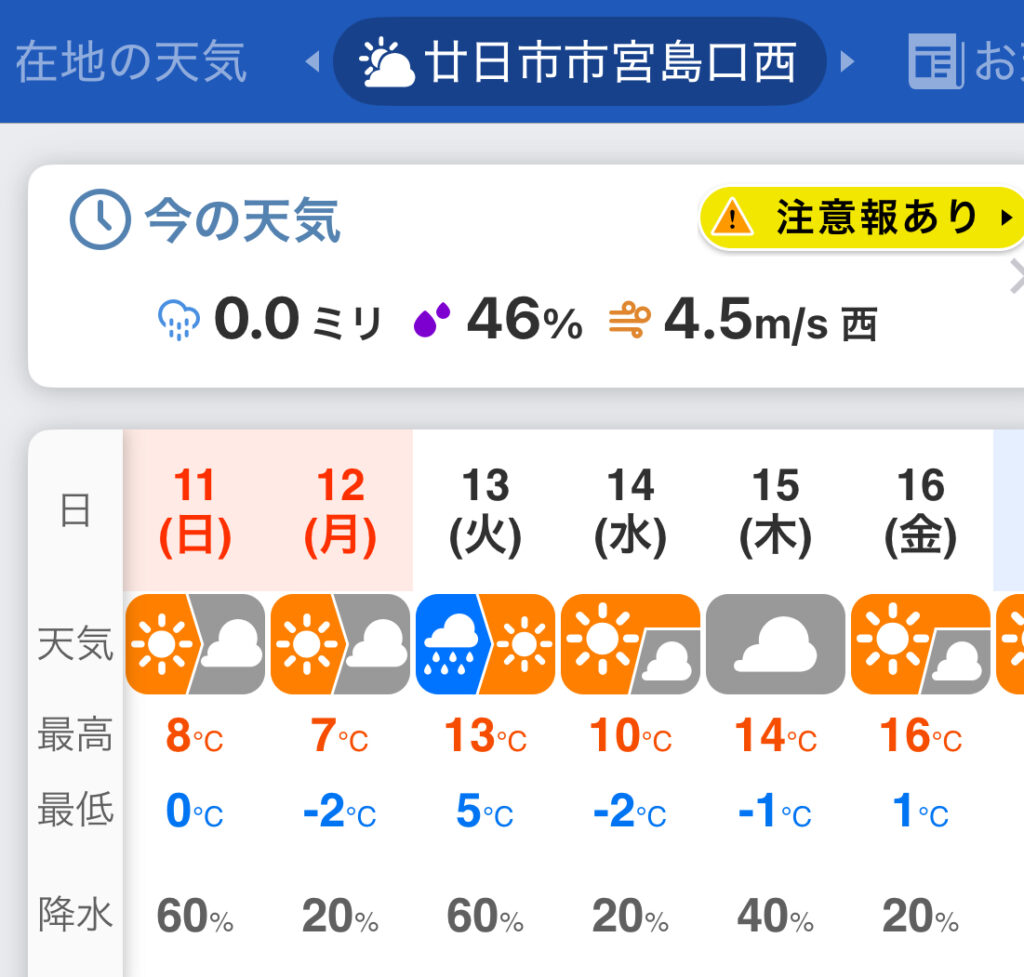 山の方は雪が降りよるんかな?