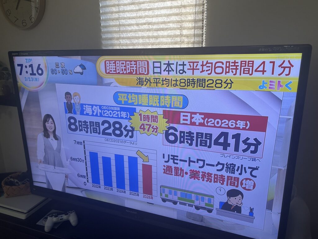 日本人ね睡眠時間が短いってやつ💤