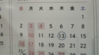 ⚪︎で囲んだ日がお休みの日