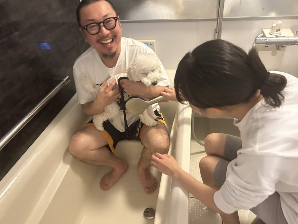 娘と力を合わせて洗います🚿