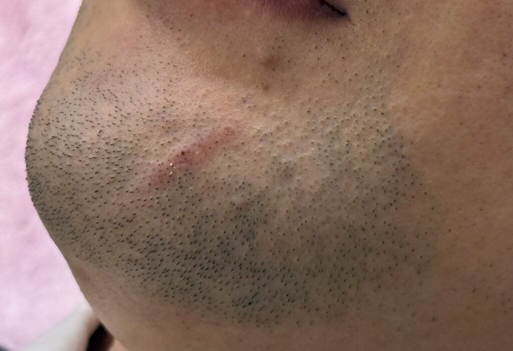 アゴに傷が出来てて
